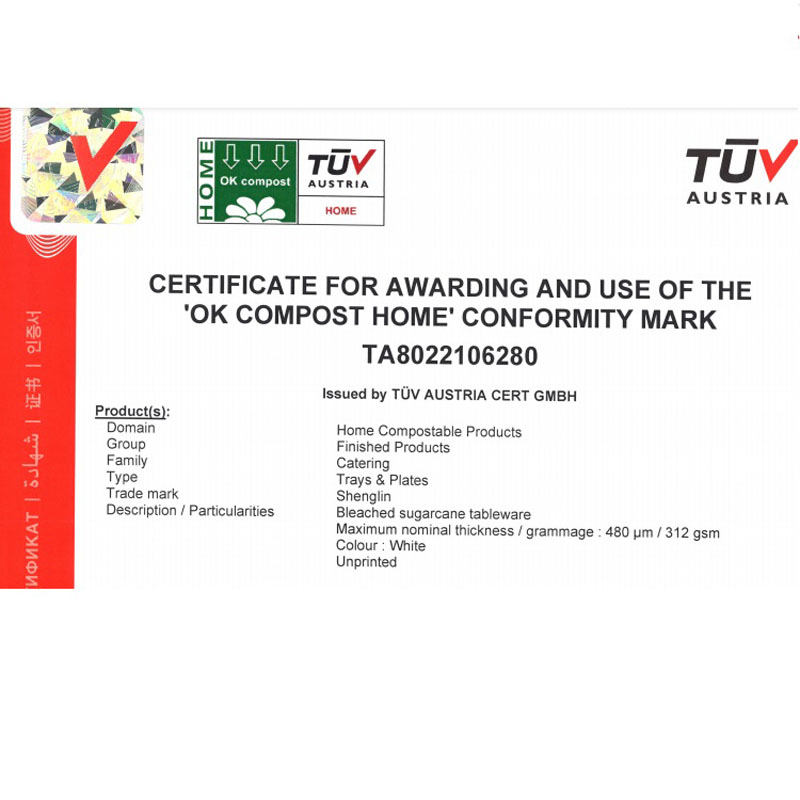 Pada 17 Desember 2021, kabar baik datang dari badan sertifikasi otoritatif Eropa-abi-vincotte di Belgia. Produk Kemasan Shenglin telah menjalani biodegradasi selama 12 bulan, aplikasi pengomposan, analisis inframerah, deteksi logam berat dan eksperimen lainnya di bawah standar EN13432, memperoleh sertifikat ok-kompos yang dikeluarkan oleh badan tersebut. Hasil ini menandai bahwa seluruh produk Shenglin Packaging yang tersertifikasi dapat menggunakan logo Ok-Compost Home. Produk bersertifikat Ok-Compost Home dapat dibuat kompos.